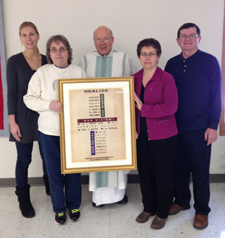 Between June and November parishioners were interviewed and invited to forums to formalize the values, vision and mission and to obtain input on how to implement. The team created an artwork and plaque identifying the values, vision and mission. Andy Adamcik of St. Anthony’s contributed the plaque.