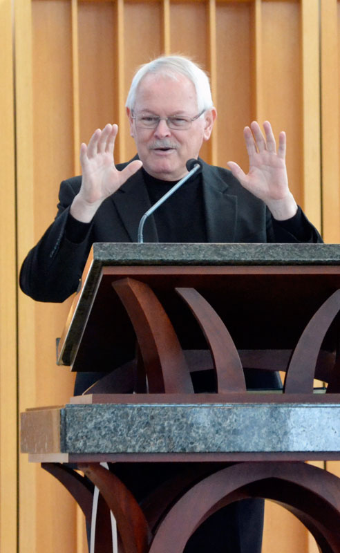 HIAWATHA, Iowa — Just before falling asleep one night you reflect about the day, contentedly, and recognize God’s hand in everything that happened. On another night you stare holes in the dark and wonder, “am I an atheist?” Does that mean on one night you had strong faith and on the other night you didn’t? No, on one night you had a strong imagination. On the other night you had a weak imagination, Oblate Father Ron Rolheiser told his audience of 600 people at a faith formation conference April 5 in St. Elizabeth Ann Seton Church.