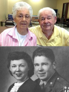Bob and Mary Pritchard in 2014, top, and in 1942
