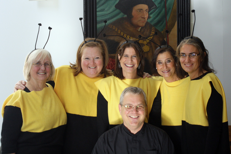 The five queen bees are Judy Duncan, music director; Joan Garrity, religious education director; Maria Gudenkauf, staff support for religious education; Michelle Montgomery, director of youth ministry; and Maricarla Rohret, office administrative assistant.