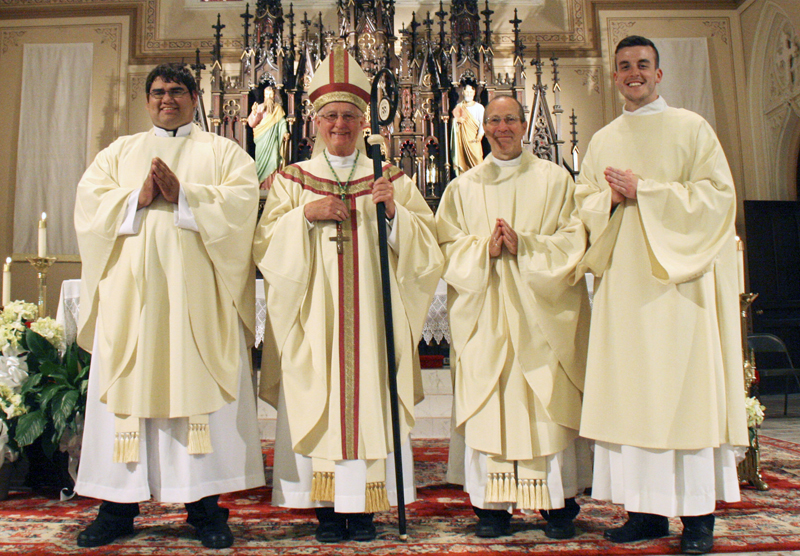 Election of the candidates followed the bishop’s homily. Father Thom Hennen, diocesan director of vocations, testified to the worthiness of each candidate and Bishop Amos accepted the recommendation. The candidates, in turn, made promises to the bishop. The congregation applauded for each man.