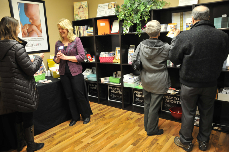 Mary Anderson, a member of St. Wenceslaus Parish-Iowa City, was impressed by the space, especially the room that houses shelves of informational materials and fetus models. “This is great! There is so much here … it is so organized,” she commented.