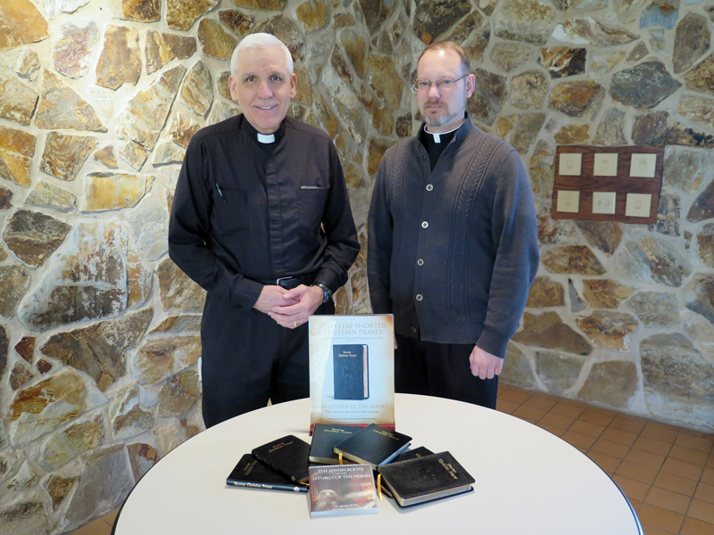 Father William Kneemiller and Father Jason Crossen show a display of the “Shorter Christian Prayer – Liturgy of the Hours” at Our Lady of Lourdes Parish in Bettendorf. Fr. Kneemiller encourages parishes to promote Liturgy of the Hours for home or parish this Lent.