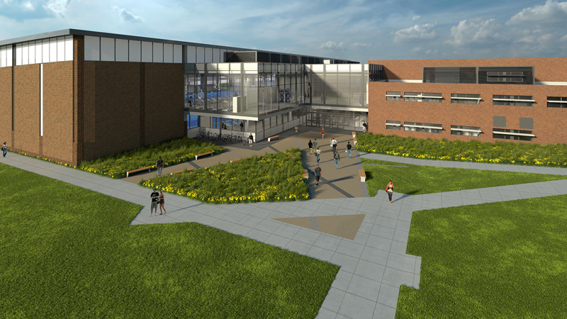 The new center will provide exercise and activity space for the general student population, lab space for some of the university’s health and wellness-related academic programs including Kinesiology, and much-needed practice space for student-athletes who participate in the university’s 23 varsity sports.
