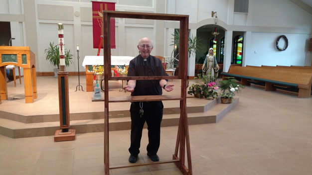 To protect communicants and people distributing Communion when Masses resume, volunteers are building freestanding, wood-frame Plexiglass shields. Father Connolly said he got the idea from Father Paul Kelly, a priest of the Diocese of Sioux City who was a classmate in seminary.