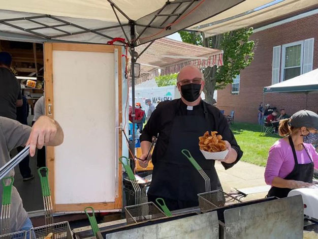 It was the Faithful Fryer’s first time working St. Mary’s Tulip Time food cart since becoming pastor of St. Mary parishes in Pella and Oskaloosa last summer. For the Pella parish, it’s a tradition more than 30 years in the making.