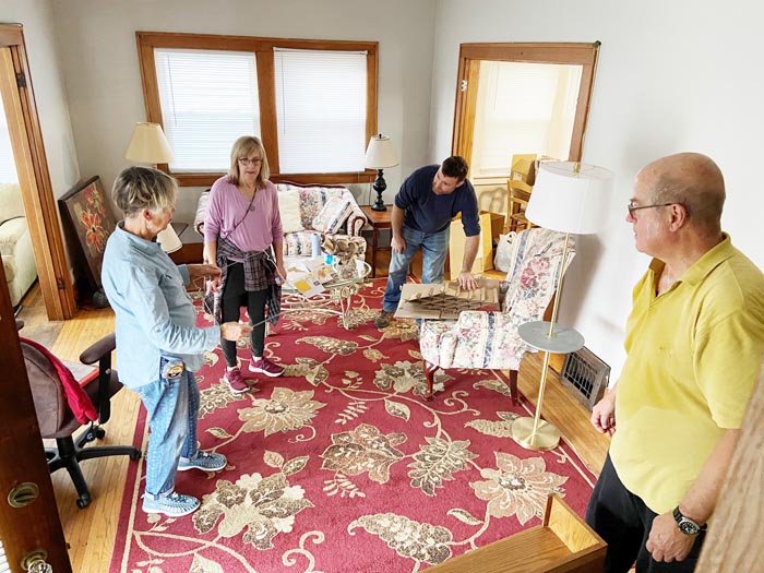 Volunteers from parishes in Scott County arrange furniture and other household items in a house in Rock Island, Ill., being readied for an Afghan family who will move in next month.