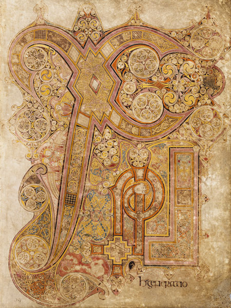 The book is impressive, indeed. Written in ancient Latin, the Book of Kells records the four Christian Gospels on pages of “vellum” made from calfskin. These pages — referred to as “leaves” — are illuminated with bright, beautiful, sacred images. Bound and tooled in leather, the book is one of the great icons of western civilization.