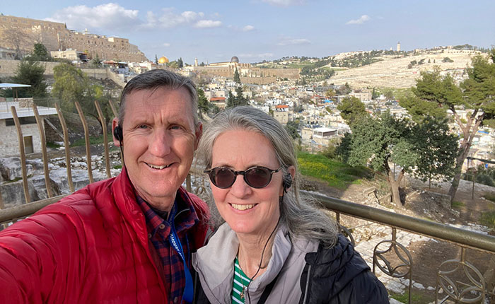 “We walked where Jesus walked, visiting ancient ruins and beautiful churches, celebrating the Eucharist and praying Scripture in the very place where it all began,” added his wife, Sue.