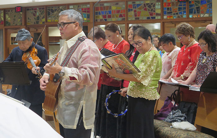 Members of the Filipino-American Association of the Iowa-Illinois Quad Cities sing and play instruments during the Simband Gabi Mass Dec. 3 at St. John Vianney Church in Bettendorf.