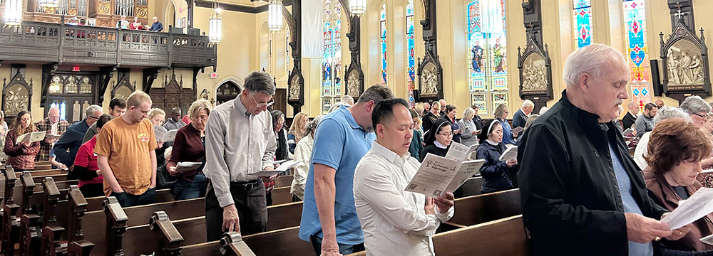 Bishop Walsh recalled seeing the movie “The Passion of the Christ” with his father, whose eyes filled with tears after viewing the graphic scenes of Christ’s suffering and crucifixion. “When we realize that Christ suffered and died for us, it is a profound experience of the love of God for us,” the bishop said. “Every Eucharist points us to the cross, but also points us to the future, that celestial banquet. … As we come to this moment of encounter with the Lord in adoration, it points to the dynamic celebration of the Eucharist at every Mass. May it always empower us to live lives worthy of this immense sacrifice and love.”