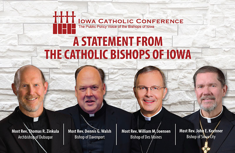 “Our response to those seeking refuge and stability in hope is not only a reflection of our nation’s founding values, but is primarily a testament to our fidelity to Christ,” said Archbishop Thomas Zinkula, Archbishop of Dubuque; Bishop William Joensen, Bishop of Des Moines; Bishop Dennis Walsh, Bishop of Davenport; and Bishop John Keehner, Bishop of Sioux City.