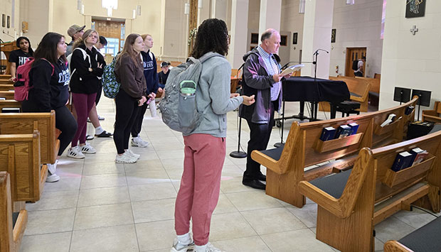 This year, Dave Baker, general manager of KALA radio on the St. Ambrose campus, chose to take his group of 17 students on the chapel tour. While the university offers a variety of tour options for new student seminar students, “this is a unique option I have not done before.”