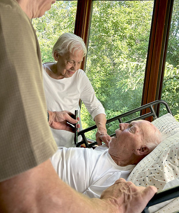 At times, Dad seemed restless and discouraged, drifting in that liminal space, where the veil between this life and the next is very thin. Mom leaned over Dad’s bed and told her husband of 68 years, “Ray, I promised that you would stay at home. We’re taking care of you right here. I’m here for you.”
