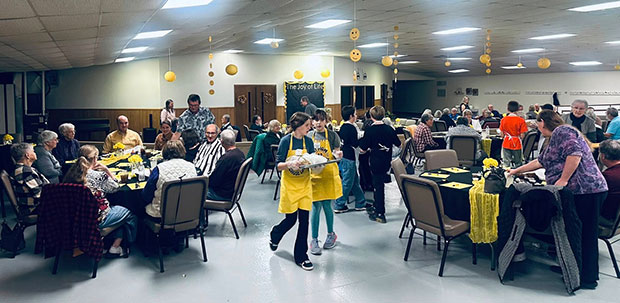 Seton Catholic School students in Ottumwa volunteered to serve at the Heartland Pregnancy Center’s fundraiser Nov. 7. Sixth-graders Millie Birrell, left and Caroline Clark carry items.
