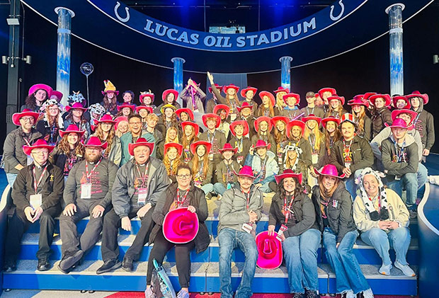 Youths and chaperones from St. Thomas More Parish-Coralville; St. James Parish-Washington; St. Mary Parish-Solon; Holy Family Parish of Riverside, Richmond and Wellman; and St. Mary Parish-Nichols pose for a photo at the National Catholic Youth Conference in Indianapolis last month.