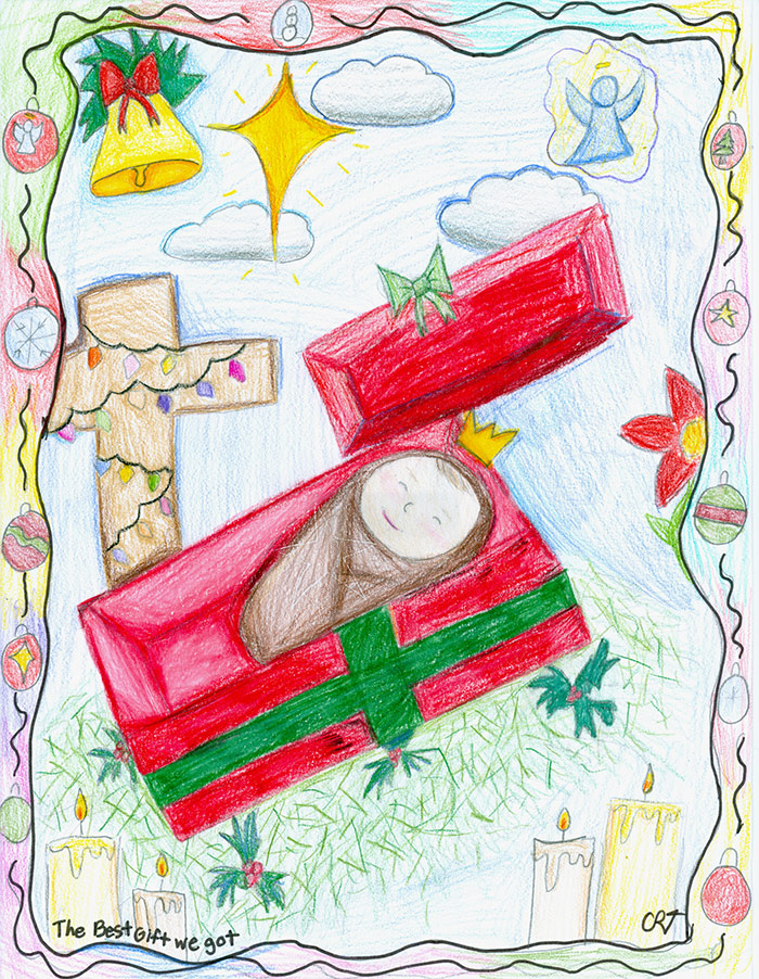 IOWA CITY — “The best gift we got,” written at the bottom of this year’s Catholic Messenger Christmas card contest winning entry, summed up colorful visual art expressing the idea that Jesus is our gift.