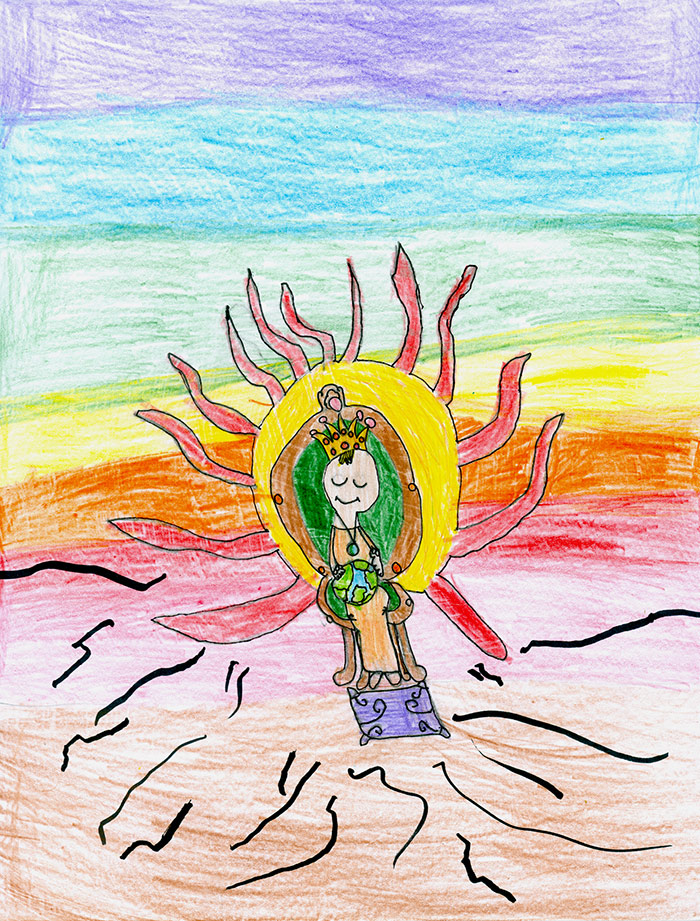 On a day earlier this month when there was a delayed start for school, Principal Celeste Vincent called The Catholic Messenger staff. The educator summoned the first place artist to her office after the students arrived. While on speaker phone, Caroline was told she is this year’s winner. Silence then filled the room, with Vincent describing the “big smile across her (Caroline’s) face.”