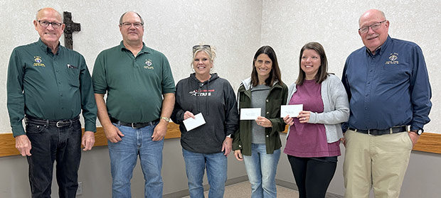 LONG GROVE — St. Ann Knights of Columbus distributed funds raised during the annual Campaign for Persons with Intellectual Disabilities (Tootsie Roll Drive) and North Scott Food Pantry Golf Outing. This year, funds benefited area special needs programs, Coats for Kids, North Scott Food Pantry and the Knights of Columbus Disaster Relief Fund.