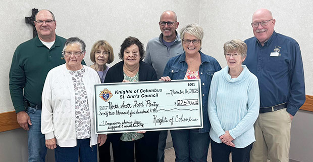 In November, the St. Ann Knights of Columbus donated $500 to the Area Education Agency Coats for Kids program to help distribute coats locally to kids in need in the area. Additionally, $500 was donated to the KC Disaster Relief Fund to help victims in disaster areas around the world.