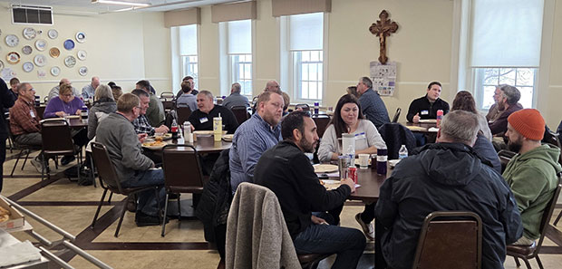 Diaconate inquirers and their wives gather at the St. Vincent Center in Davenport Dec. 13 for a deacon discernment day.