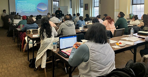 El profesor Manuel Cuya-Yaya y Miguel Moreno, presentaron el curso de “Desarrollo del Pensamiento Crítico”el 20 de diciembre al Centro Pastoral San Vicente en Davenport.