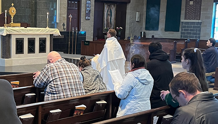 Catholics pray for vocations during a workshop at St. Patrick Parish in Iowa City last month.