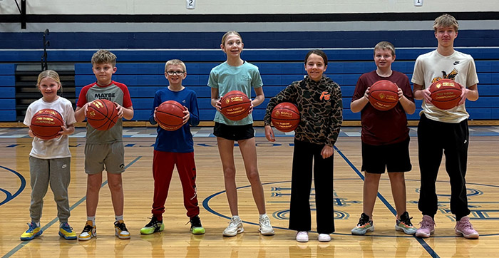Knights of Columbus free throw champions are, from left, Brynn Henrich, Reece Holtkamp, Brady Moeller, Kenna Gehling, Mylan Braden, Jonah Moeller and Logan Henrich.